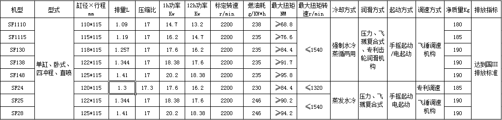 该系列包括SF1110SF1115SF130SF138-2SF148-2,是我公司与上海内燃机研究所在原循环水机型基础上博采众长,将供配资源与生产要素有机整合,对重要零部件结构进行了改进、优化而设计出的一种新机型。